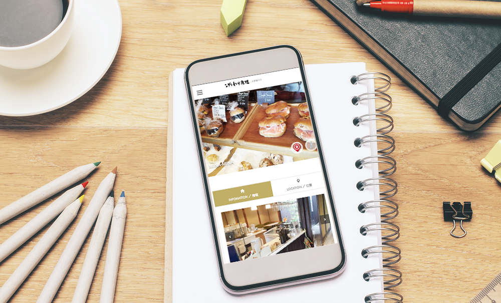 学生が京都にある、こだわりをもったお店を紹介するホームページを製作。近年、スマートフォンの普及によりPCサイトよりスマートフォンサイトを充実したいということにより、レスポンシブデザインでの製作を提案。