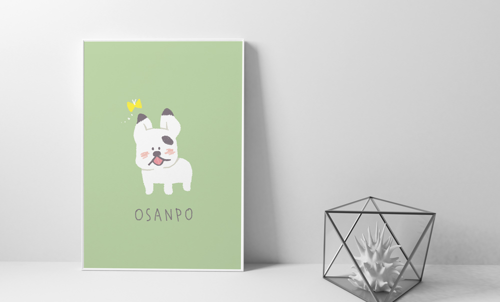 フレンチブルドッグの蛍を題材としてデザイナーがキャラクター化。 こちらは弊社デザイナーMさんが制作。両キャラクターデザインは、「表情豊かでユーモラスなフレンチブルドッグの魅力を 身近に感じていただけるよう、素朴なタッチで表現しました。」とのコメントをいただきました。