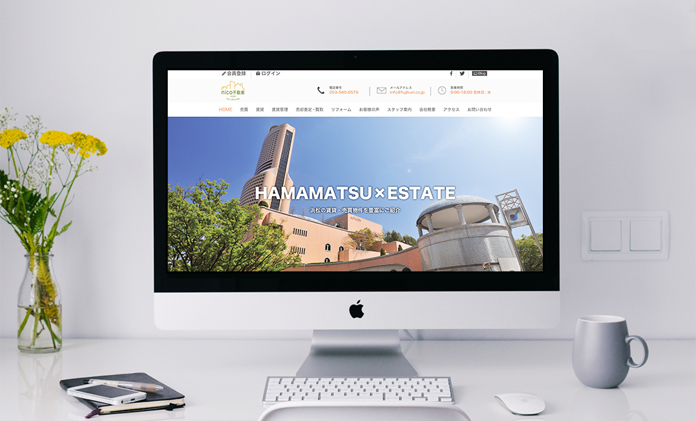 静岡県浜松市にある不動産会社。賃貸だけではなく、売買・リフォームなど不動産に関するこ事業を一通りしています。今回は、WEB/ホームページのリニューアルをご依頼いただきました。現状のサイトに関して、コンテンツが少ないため、それぞれのコンテンツでページを分けたい、オレンジや緑のカラーや写真ベースでわかりやすいカフェ風のWEBサイトにしたい、というご希望をいただきました。 実際のWEB/ホームページでは、グリッドシステムを使い写真を豊富に使いながらもスッキリと整理したレイアウトにしました。間にコーヒーやエスプレッソマシーン等の写真を使用し、カフェ を意識させるWEBデザインとなっています。 また、今回のWEB/ホームページは、PC・タブレット・スマートフォンに対応できるようレスポンシブデザインで制作しています。