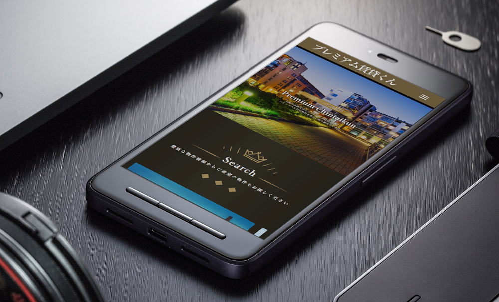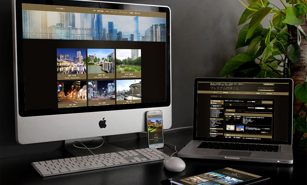 今回は、WEB/ホームページのリニューアル?をご依頼いただきました。ご希望は、高級感のあるデザインで、高級な物件を取り扱っているということをアピールしたいとのことでした。 実際のWEB/ホームページでは、黒を背景に明度の低いゴールドを組み合わせることで、ゴージャスな雰囲気を表現しました。また背景に薄くグラデーションを入れることで高級なイメージを演出しています。 今回のWEB/ホームページは、PC・タブレット・スマートフォンに対応できるようレスポンシブデザインで制作しています。物件情報等に関しては、不動産システム(いい生活様)を使用しています。