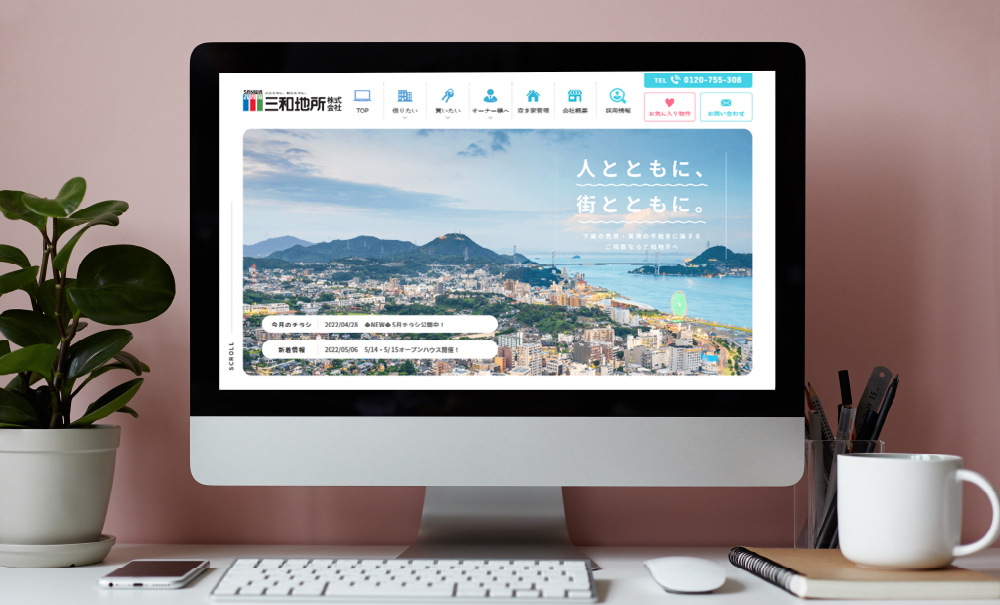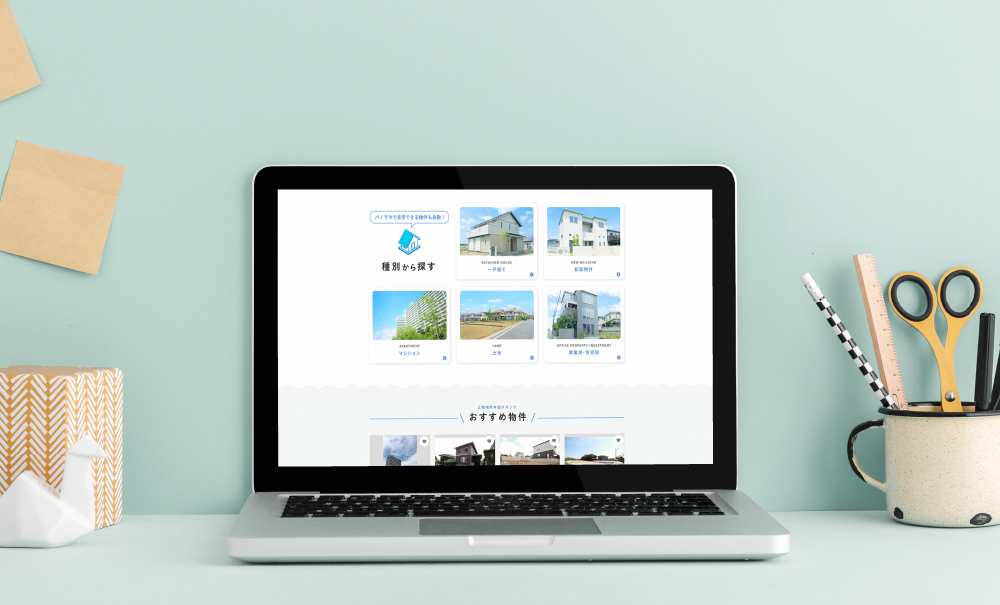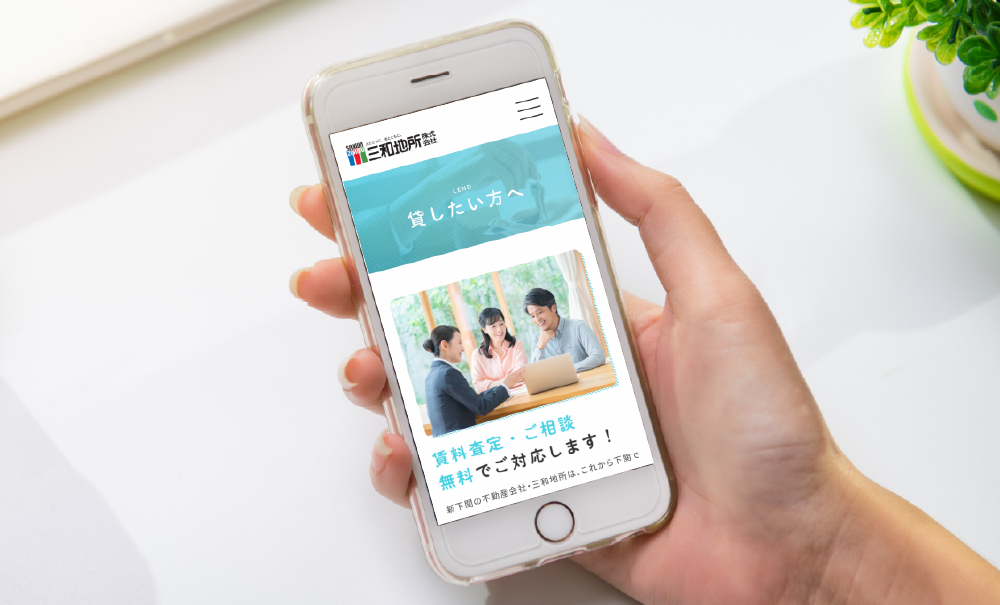 不動産会社様のホームページリニューアルをご依頼いただきました。賃貸物件や売買物件を検索するTOPページには、検索ボタンを上部に集めることで検索のしやすい導線としています。また、今回のWEB/ホームページは、PC・タブレット・スマホに対応できるようレスポンシブデザインで制作しており、特にスマホ時にはスマホ専用に組み替えを行なっています。