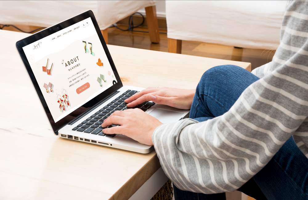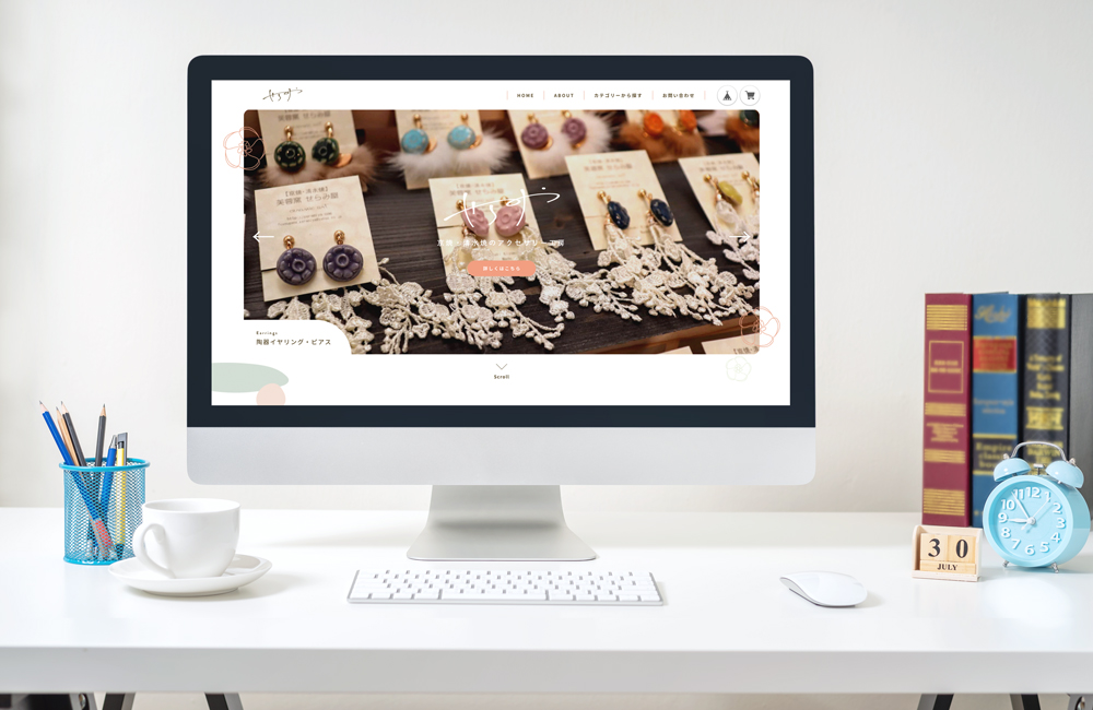 京都を拠点に活動する陶芸家様のオンランショップ(ECサイト)を制作させていただきました。作品がとても可愛らしく印象的でしたので、切り抜いて散りばめる見せ方をご提案させていただきました。また、今回のWEB/ホームページは、PC・タブレット・スマホに対応できるようレスポンシブデザインで制作しており、特にスマホ時にはスマホ専用に組み替えを行なっています。
