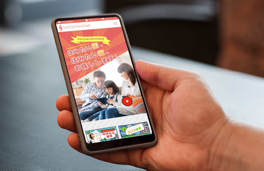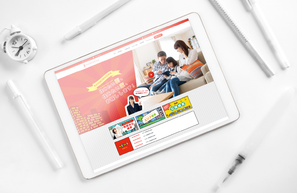 POPでそれぞれが目を引くワクワクできるサイトデザインにしたいとご希望いただきました。また、今回のWEB/ホームページは、PC・タブレット・スマートフォンに対応できるようレスポンシブデザインで制作しています。物件情報等に関しては、不動産システム(いい生活様)を使用しています。