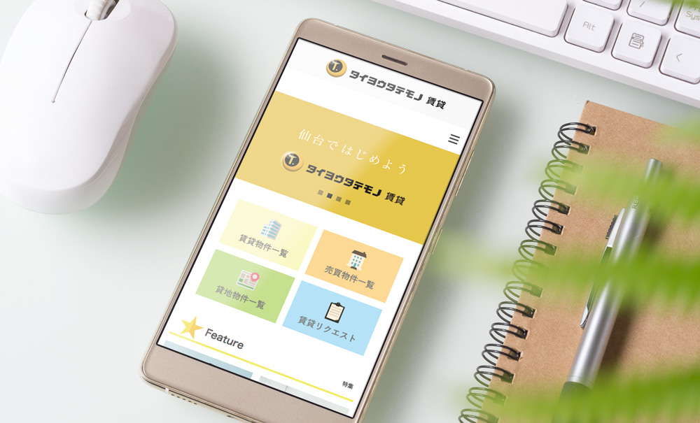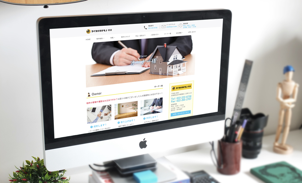 今回は、WEB/ホームページのリニューアルをご依頼いただきました。ご希望は、明るく可愛らしいデザインで、フラットデザインのWEBにして欲しいとのことでした。 実際のWEB/ホームページでは、水色と黄色をベースに明度の高い色合いでまとめました。フラットアイコンを多用することで一目で内容が分かるようにしつつ、楽しく可愛いらしい印象を与え るWEBデザインにしています。 また、今回のWEB/ホームページは、PC・タブレット・スマートフォンに対応できるようレスポンシブデザインで制作しています。物件情報等に関しては、不動産システム(いい生活様)を使用しています。