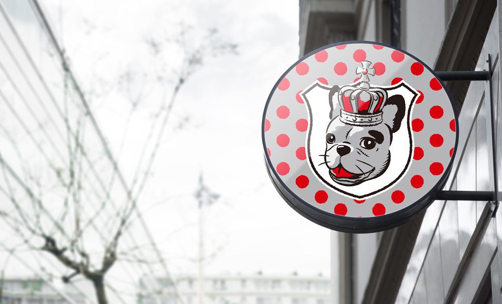 フレンチブルドッグの蛍を題材としてデザイナーがキャラクター化。 こちらは弊社デザイナーTさんが制作。1つ目のキャラクターデザインは、「ハロウィンが近くなってきたので ハロウィンコスプレの蛍くんにしてみました。インスタなどでクスッと笑えるアートを意識しました。」 とのこと。2つ目のキャラクターデザインでは、「モノトーンに赤をポイントで入れたエンブレム調のデザインにスマホカバーやトレーナーなどアパレル用を意識しました。」とコメントをいただきました。