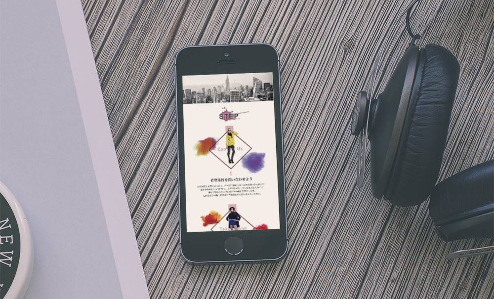 不動産会社「賃貸くん」とタレント養成事務所「KCE」のコラボページ。今回はレスポンシブデザインではなく、スマホ専用サイト。KCEの方だけ仲介手数料が無料の告知サイト。
